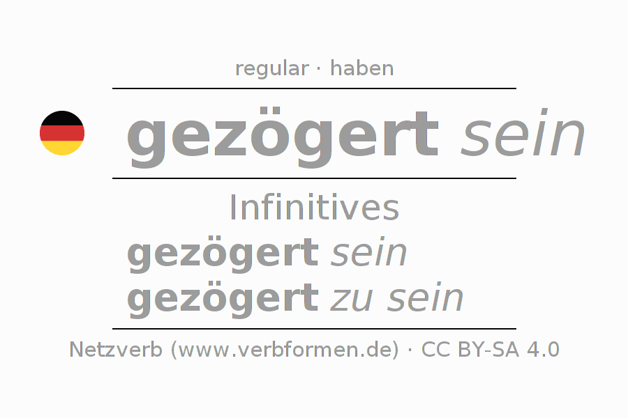 The conjugation of zögern in Infinitive Present Perfect base form Statal Passive is gezögert sein, gezögert zu sein.The conjugation corresponds to certain grammatical rules. Likewise the requirements for the conjugation of the simple verb forms of zögern in Infinitive. Comments ☆
