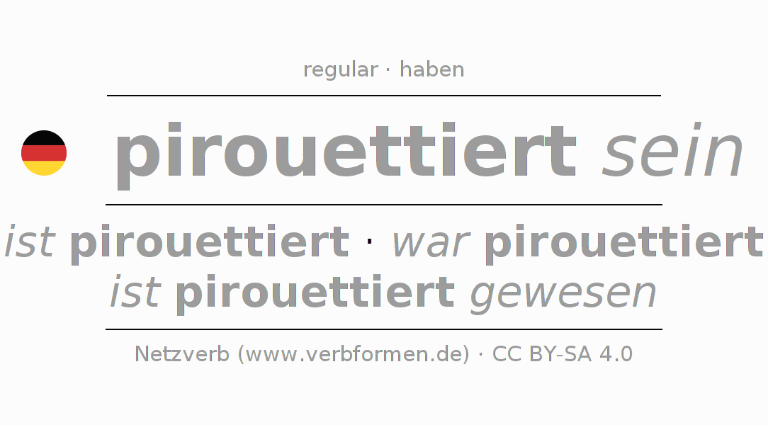 The verb pirouettieren fully conjugated in all persons and numbers in the Infinitive Present Perfect