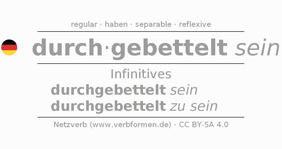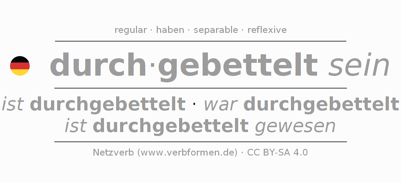 The verb sich durchbetteln fully conjugated in all persons and numbers in the Infinitive Present Perfect