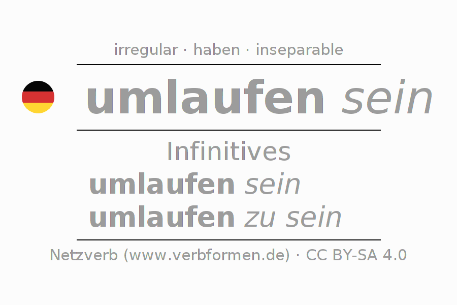 The verb umlaufen (hat) fully conjugated in all persons and numbers in the Infinitive Present Perfect