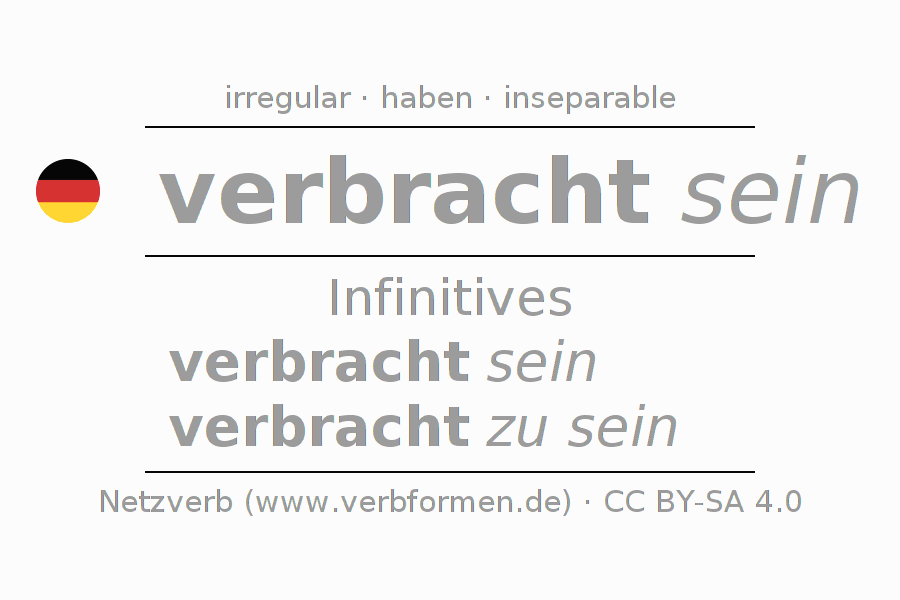 The conjugation of verbringen in Infinitive Present Perfect base form Statal Passive is verbracht sein, verbracht zu sein.The conjugation corresponds to certain grammatical rules. Likewise the requirements for the conjugation of the simple verb forms of verbringen in Infinitive. Comments ☆
