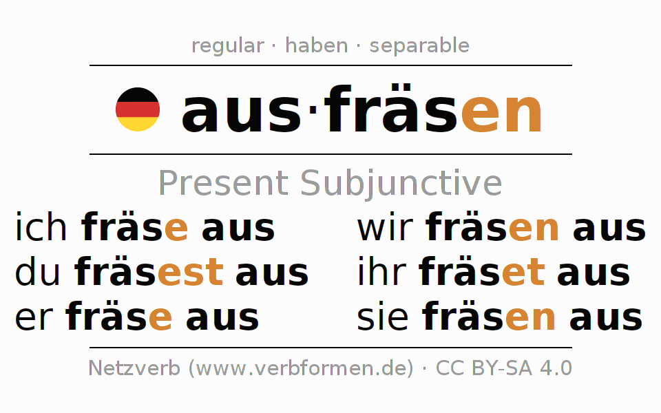 The verb ausfräsen fully conjugated in all persons and numbers in the Subjunctive Present