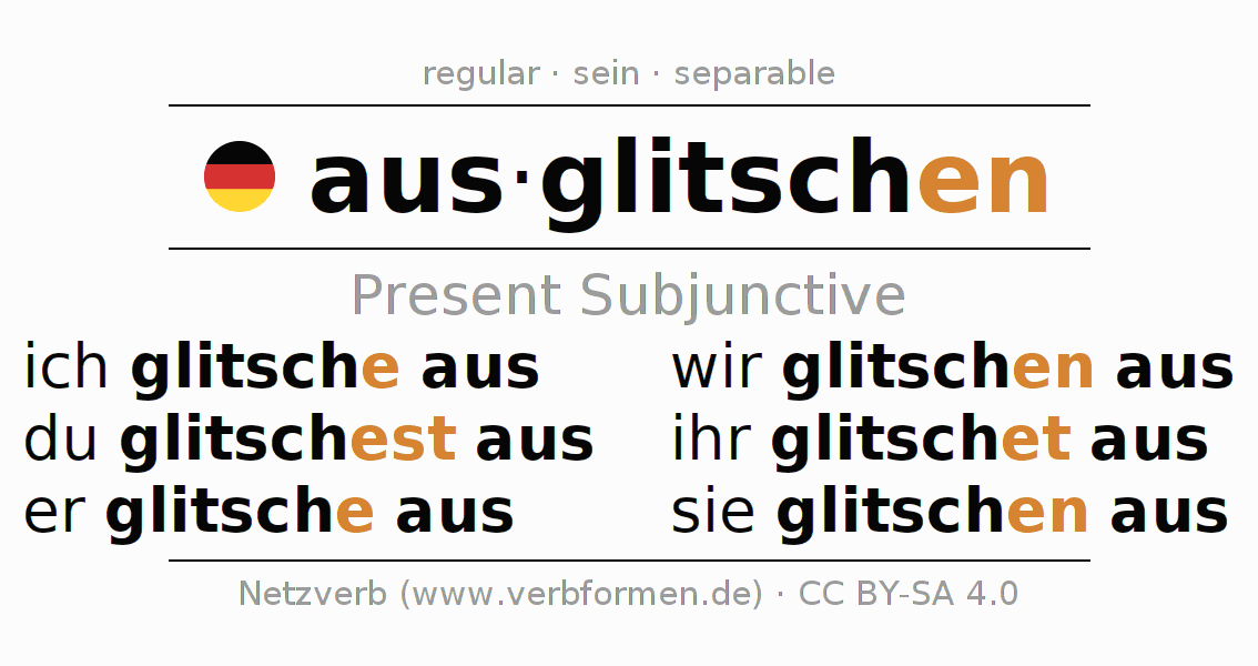The verb ausglitschen fully conjugated in all persons and numbers in the Subjunctive Present
