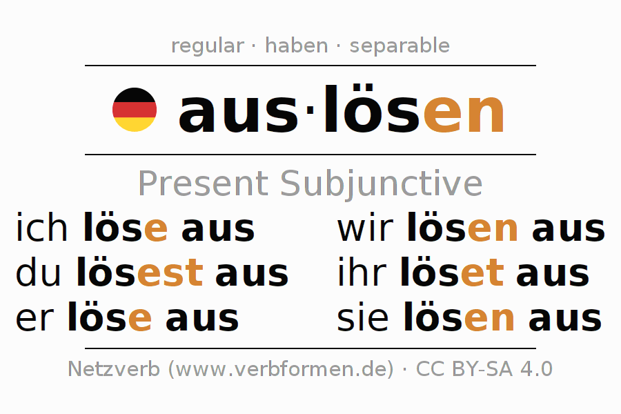 The verb auslösen fully conjugated in all persons and numbers in the Subjunctive Present