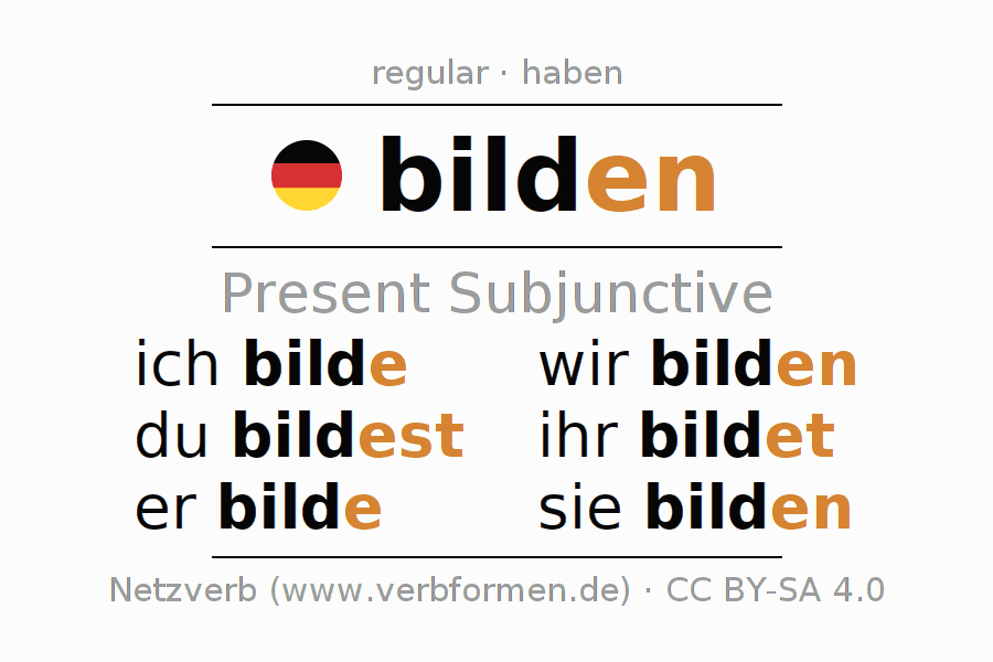 The verb bilden fully conjugated in all persons and numbers in the Subjunctive Present