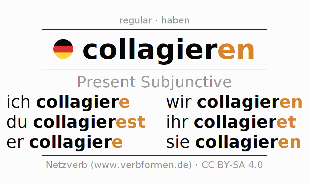 The verb collagieren fully conjugated in all persons and numbers in the Subjunctive Present