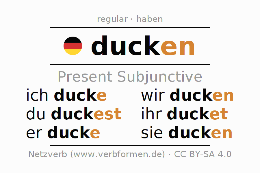 The verb ducken fully conjugated in all persons and numbers in the Subjunctive Present
