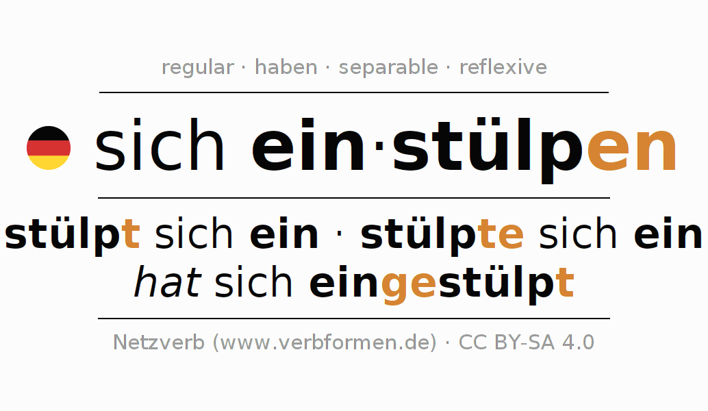 - ich stülpe mir/mich ein (1st PersonSingular)