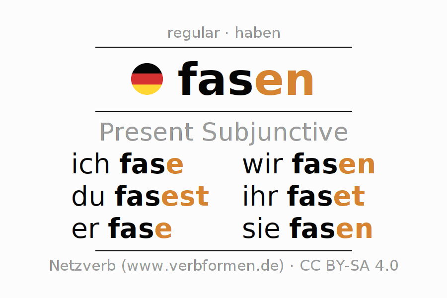 The verb fasen fully conjugated in all persons and numbers in the Subjunctive Present