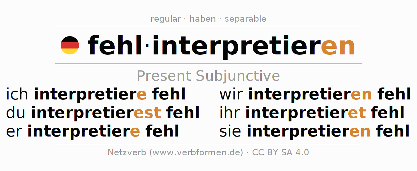 Verb forms in Present Subjunctive of fehlinterpretieren