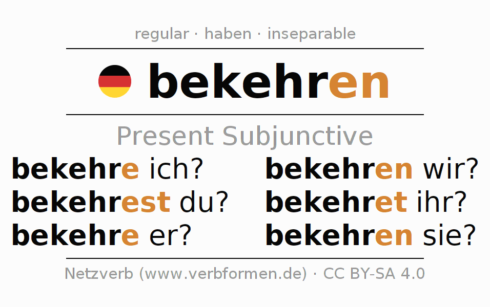 The verb bekehren fully conjugated in all persons and numbers in the Subjunctive Present