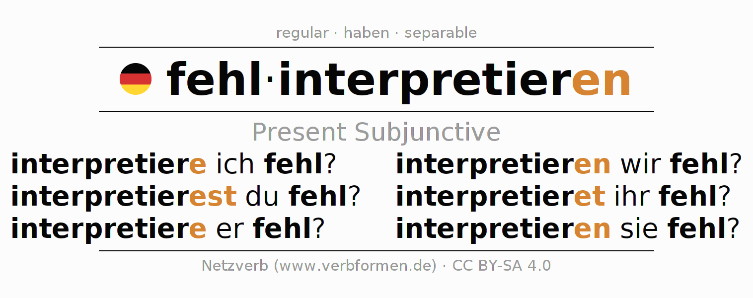 Verb forms in Present Subjunctive of fehlinterpretieren