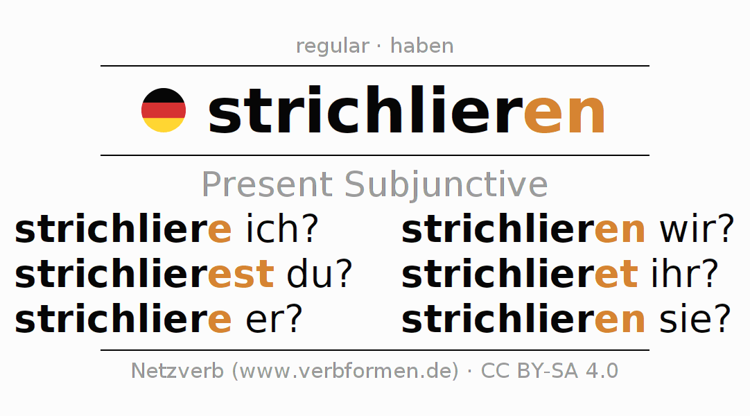 The verb strichlieren fully conjugated in all persons and numbers in the Subjunctive Present