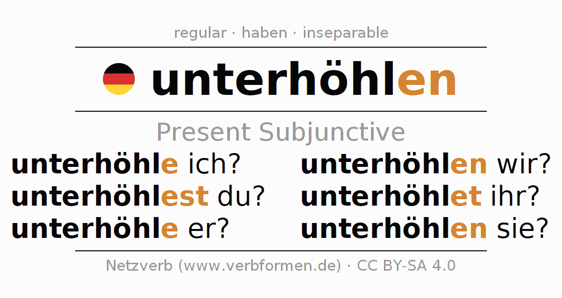 The verb unterhöhlen fully conjugated in all persons and numbers in the Subjunctive Present