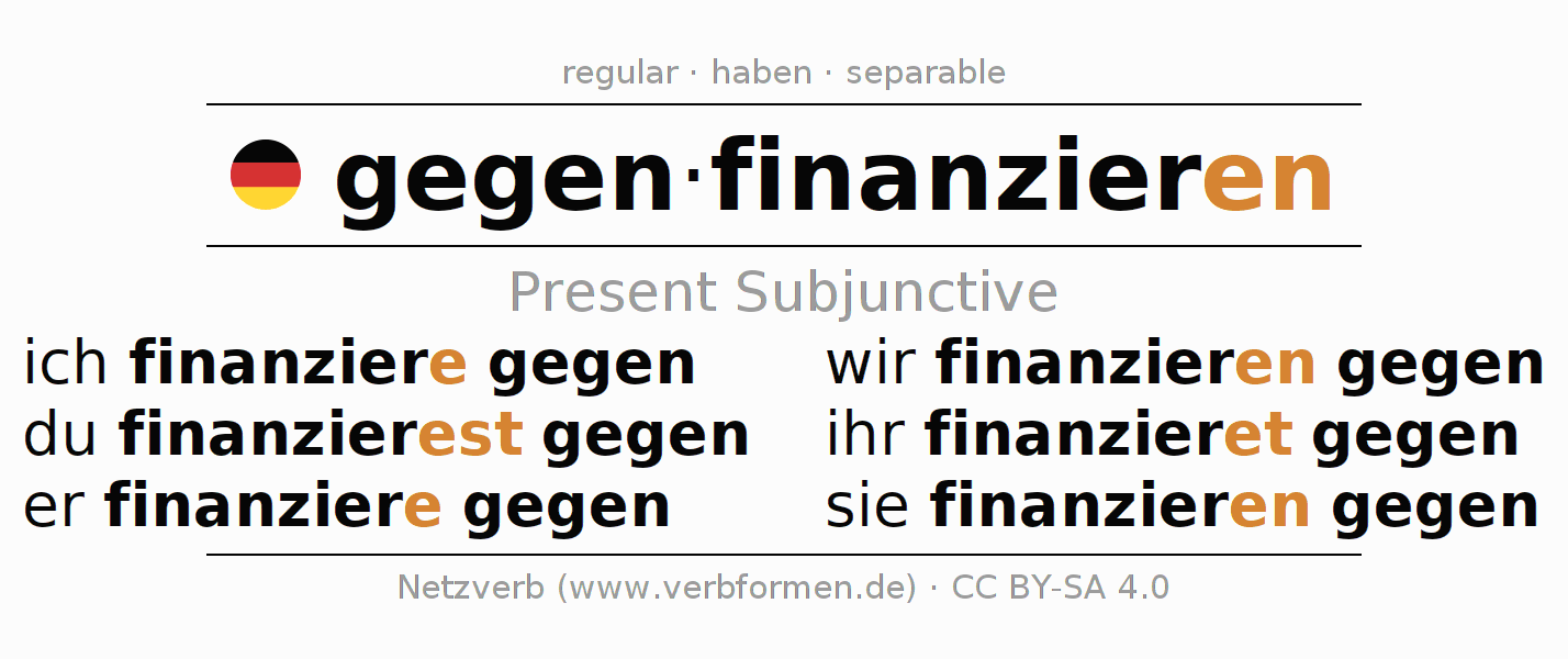 The verb gegenfinanzieren fully conjugated in all persons and numbers in the Subjunctive Present