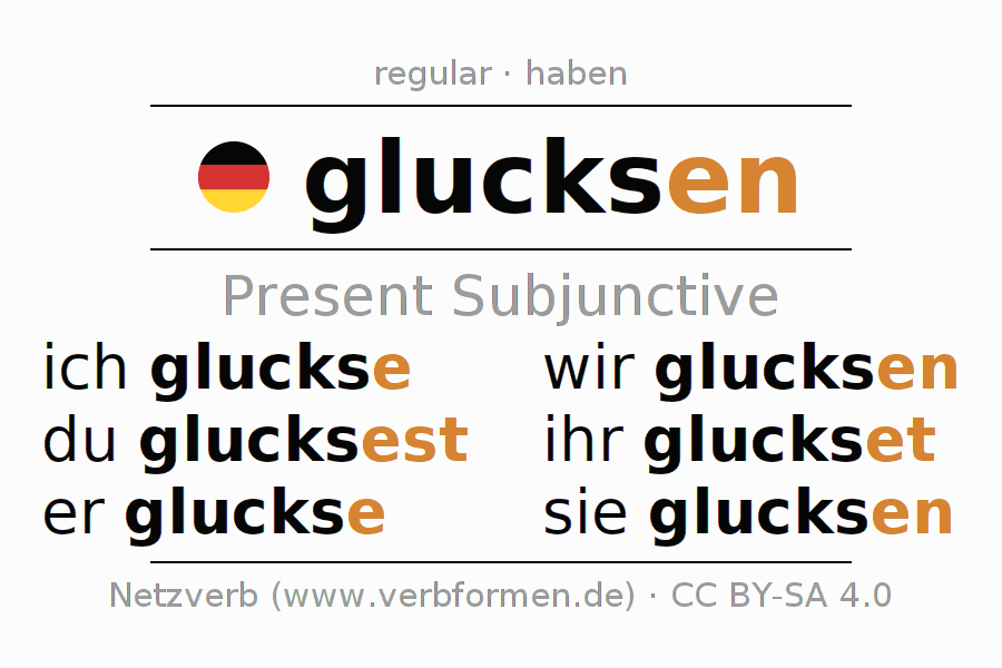 The verb glucksen fully conjugated in all persons and numbers in the Subjunctive Present