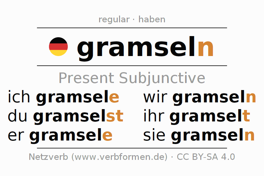 The verb gramseln fully conjugated in all persons and numbers in the Subjunctive Present