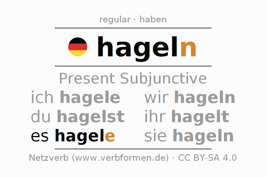 The verb hageln fully conjugated in all persons and numbers in the Subjunctive Present