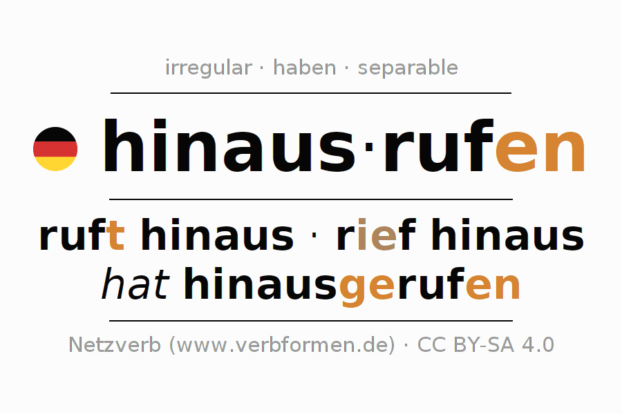 The verb hinausrufen fully conjugated in all persons and numbers in the Subjunctive Present