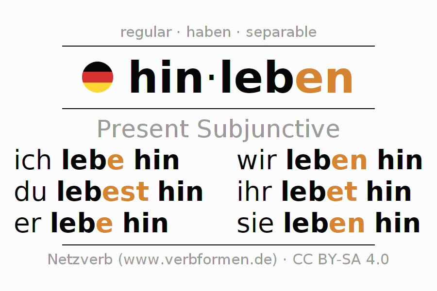 The verb hinleben fully conjugated in all persons and numbers in the Subjunctive Present