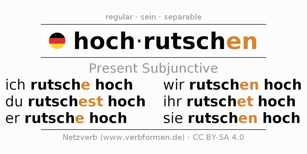 The verb hochrutschen fully conjugated in all persons and numbers in the Subjunctive Present
