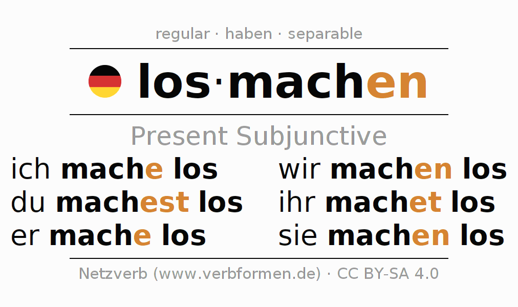 The verb losmachen fully conjugated in all persons and numbers in the Subjunctive Present