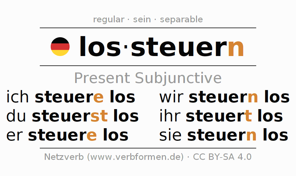 The verb lossteuern fully conjugated in all persons and numbers in the Subjunctive Present