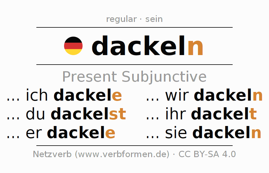 The verb dackeln fully conjugated in all persons and numbers in the Subjunctive Present