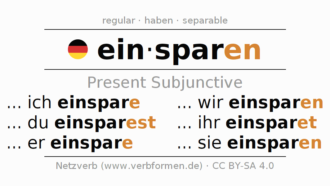 The verb einsparen fully conjugated in all persons and numbers in the Subjunctive Present