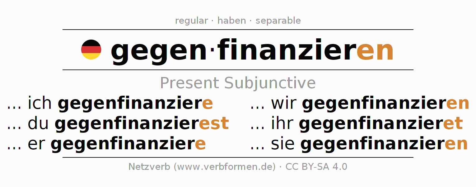 The verb gegenfinanzieren fully conjugated in all persons and numbers in the Subjunctive Present
