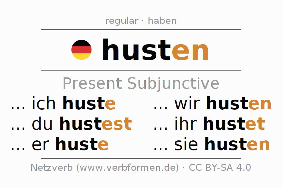 The verb husten fully conjugated in all persons and numbers in the Subjunctive Present