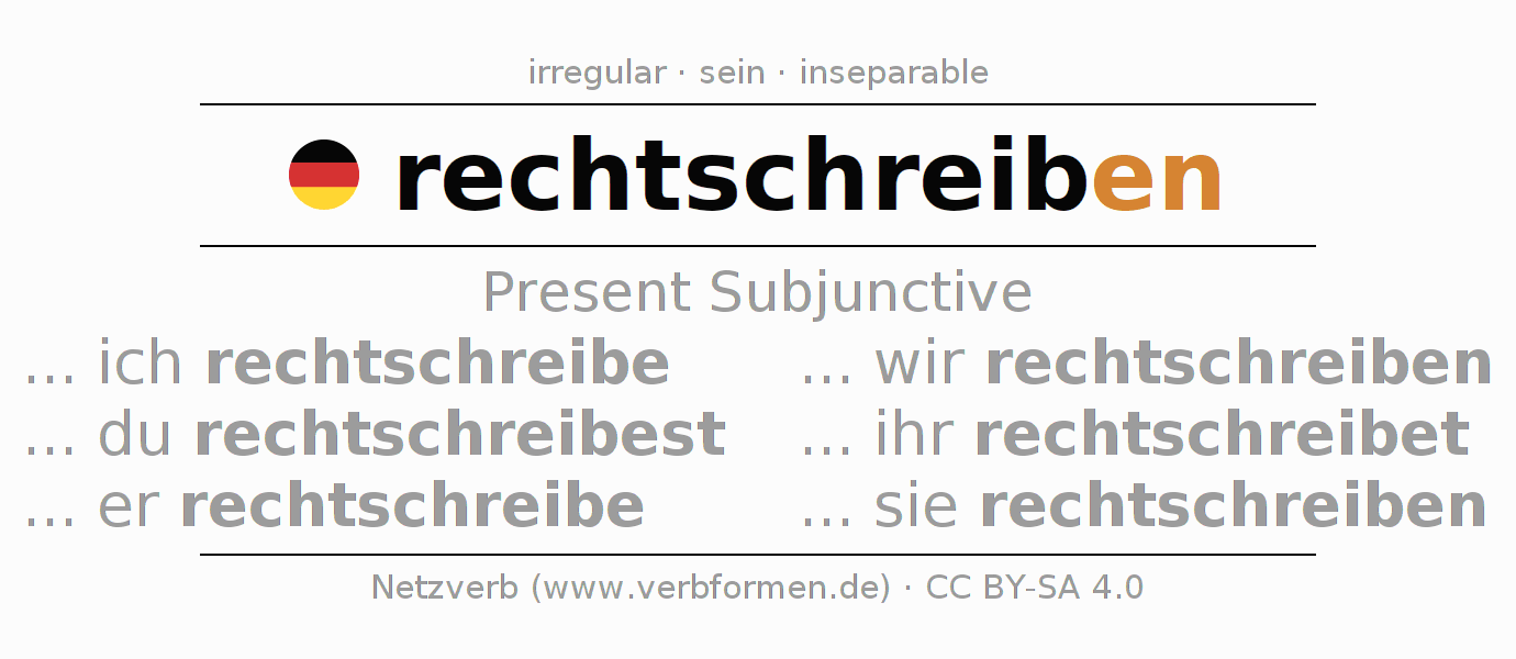 Present Subjunctive of German verb rechtschreiben (ist) 〈Subordinate〉