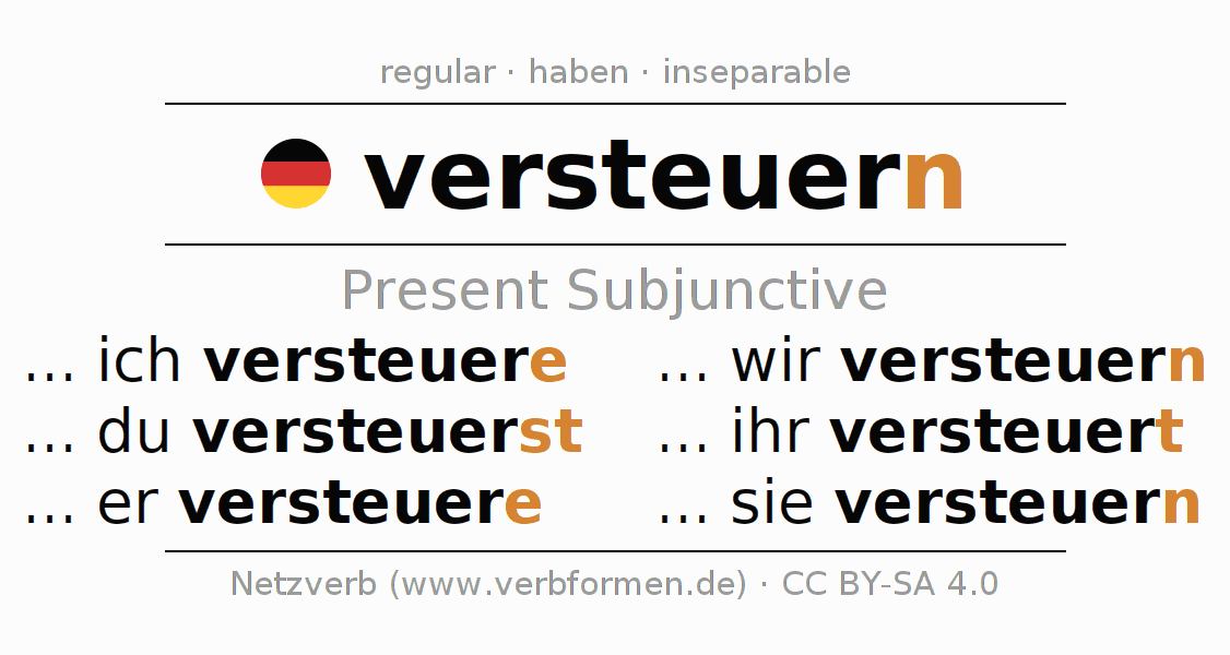 The verb versteuern fully conjugated in all persons and numbers in the Subjunctive Present
