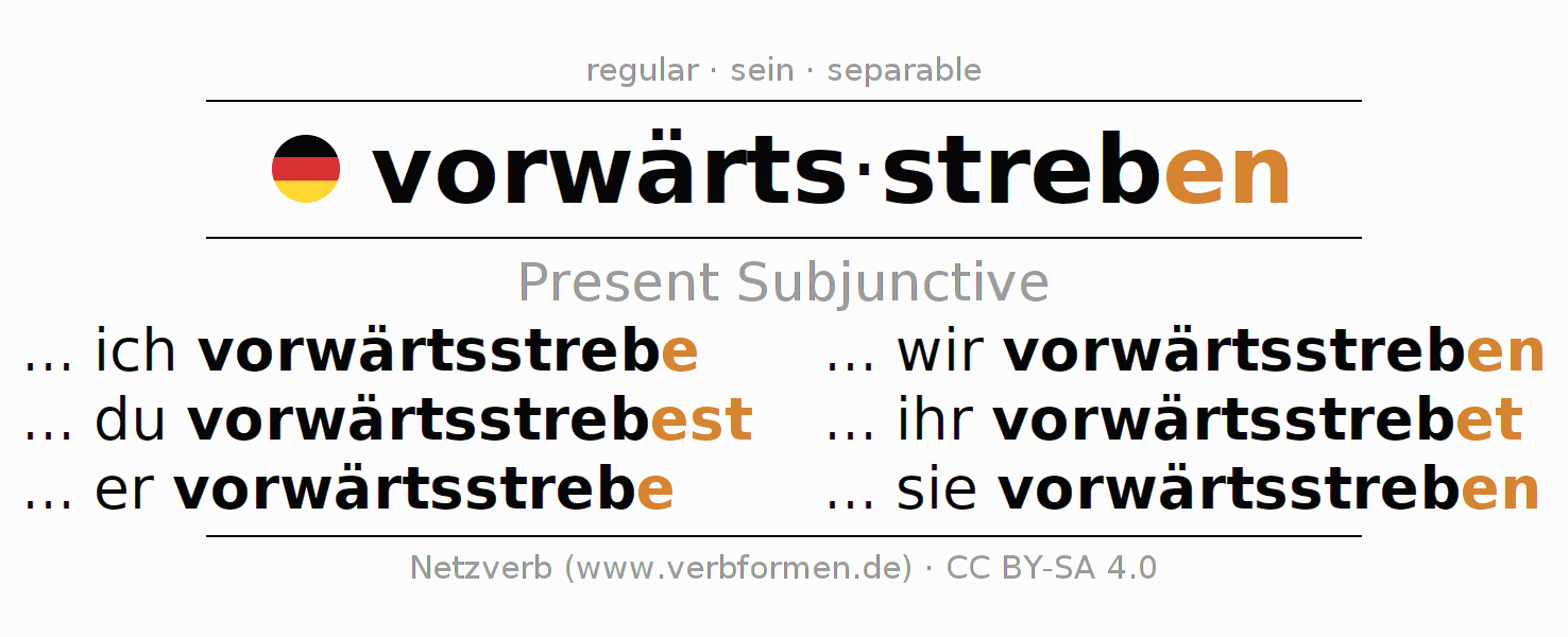 The verb vorwärtsstreben fully conjugated in all persons and numbers in the Subjunctive Present