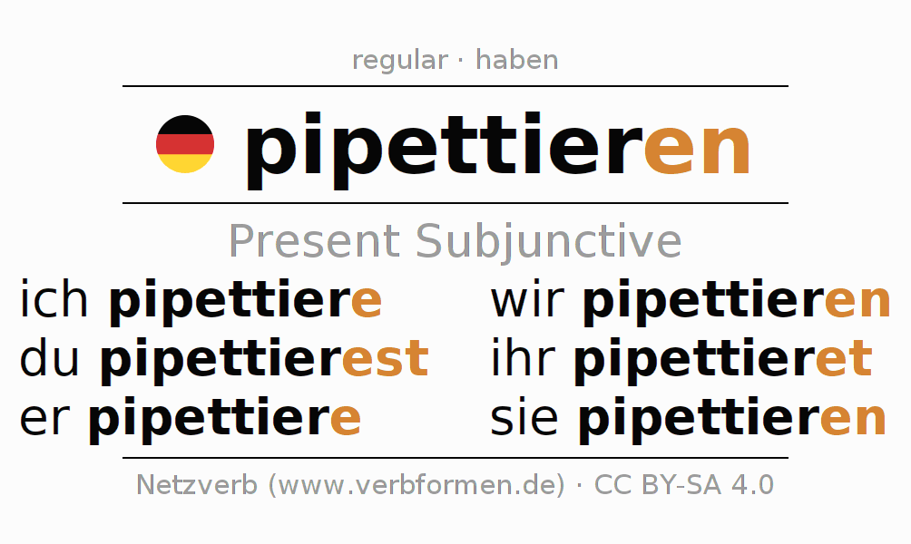 The verb pipettieren fully conjugated in all persons and numbers in the Subjunctive Present