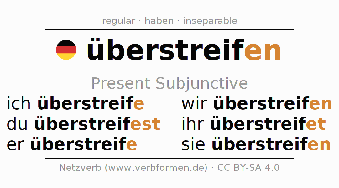 The verb überstreifen fully conjugated in all persons and numbers in the Subjunctive Present
