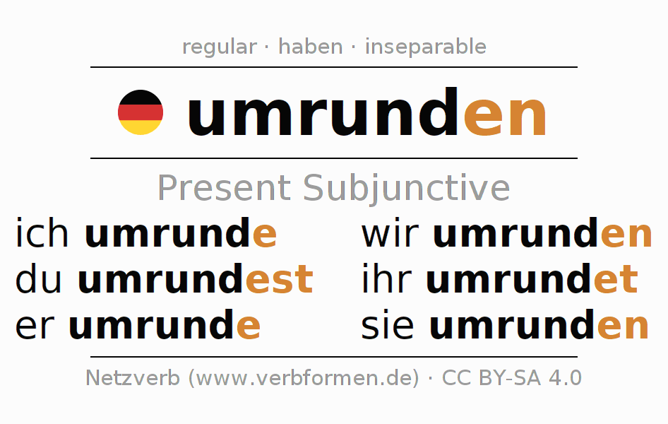 The verb umrunden fully conjugated in all persons and numbers in the Subjunctive Present