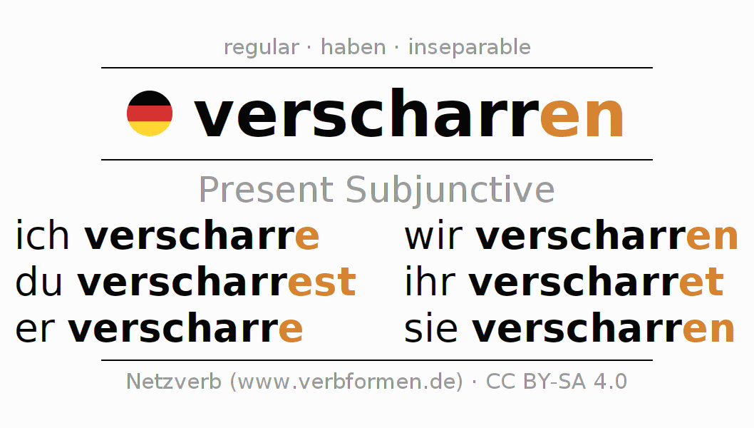 The verb verscharren fully conjugated in all persons and numbers in the Subjunctive Present
