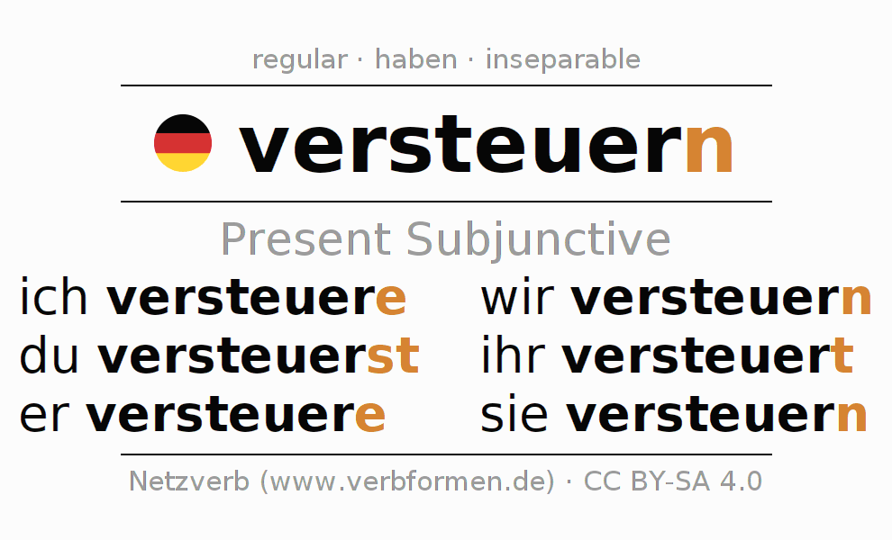 The verb versteuern fully conjugated in all persons and numbers in the Subjunctive Present
