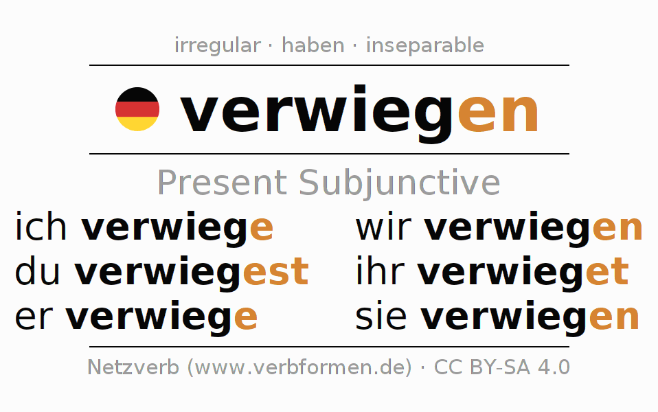 The verb verwiegen fully conjugated in all persons and numbers in the Subjunctive Present