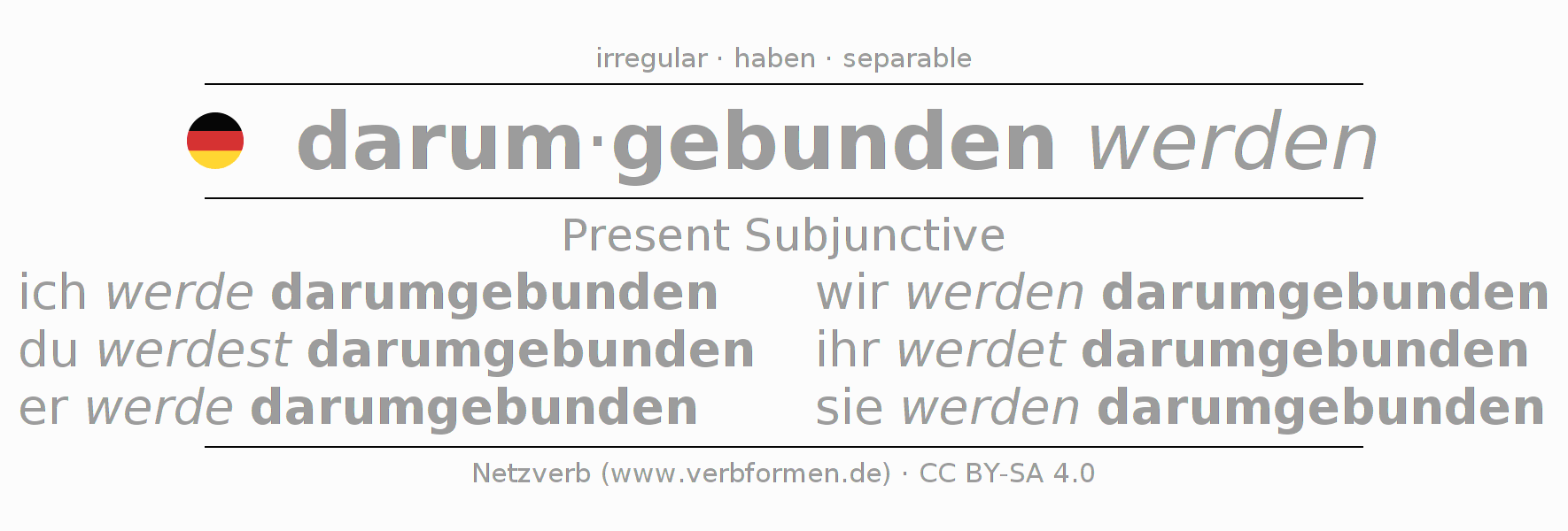 The verb darumbinden fully conjugated in all persons and numbers in the Subjunctive Present
