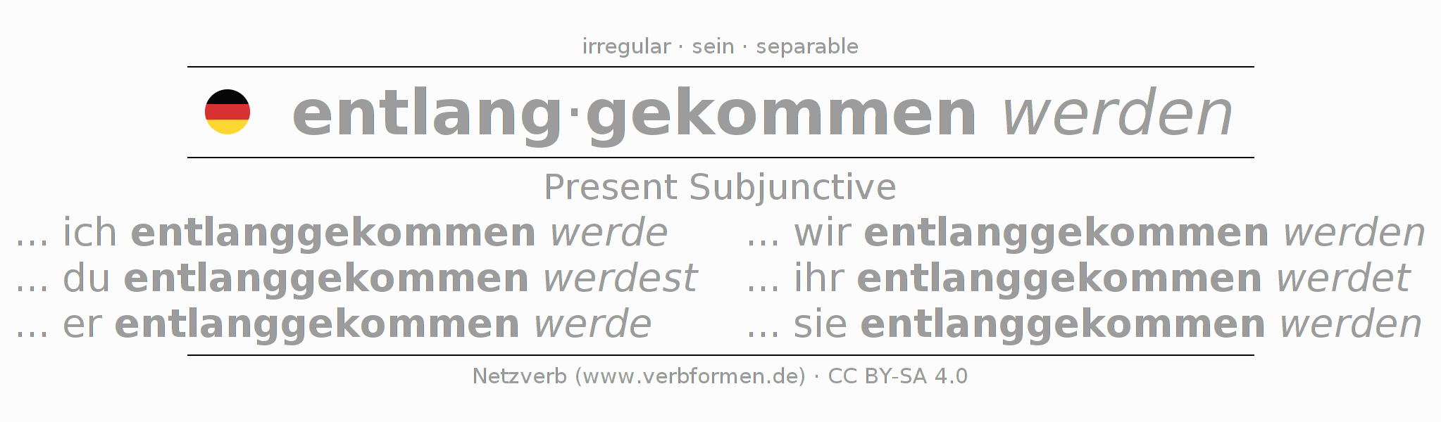 Present Subjunctive of German verb entlangkommen 〈Passive〉 〈Subordinate〉