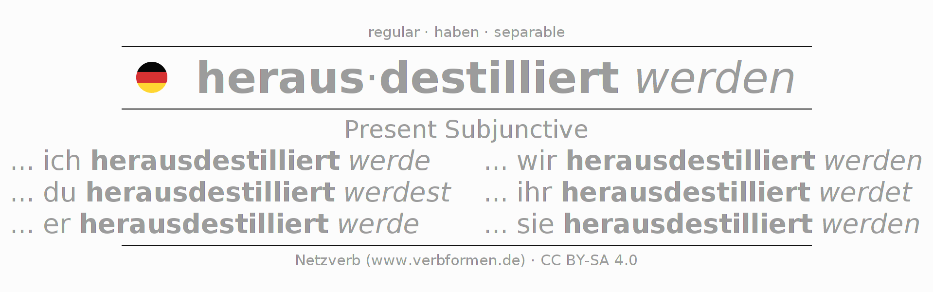 The verb herausdestillieren fully conjugated in all persons and numbers in the Subjunctive Present
