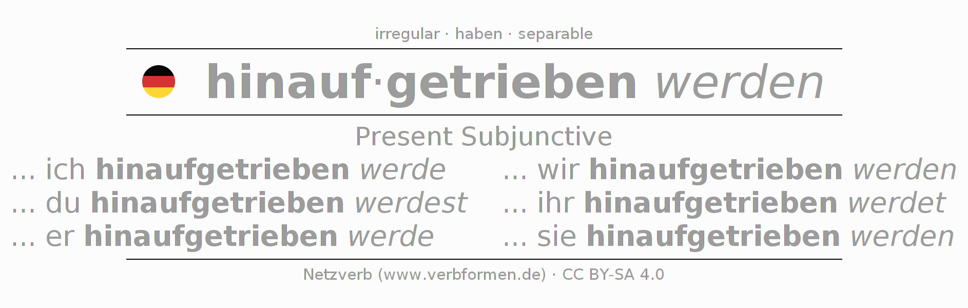 The verb hinauftreiben fully conjugated in all persons and numbers in the Subjunctive Present