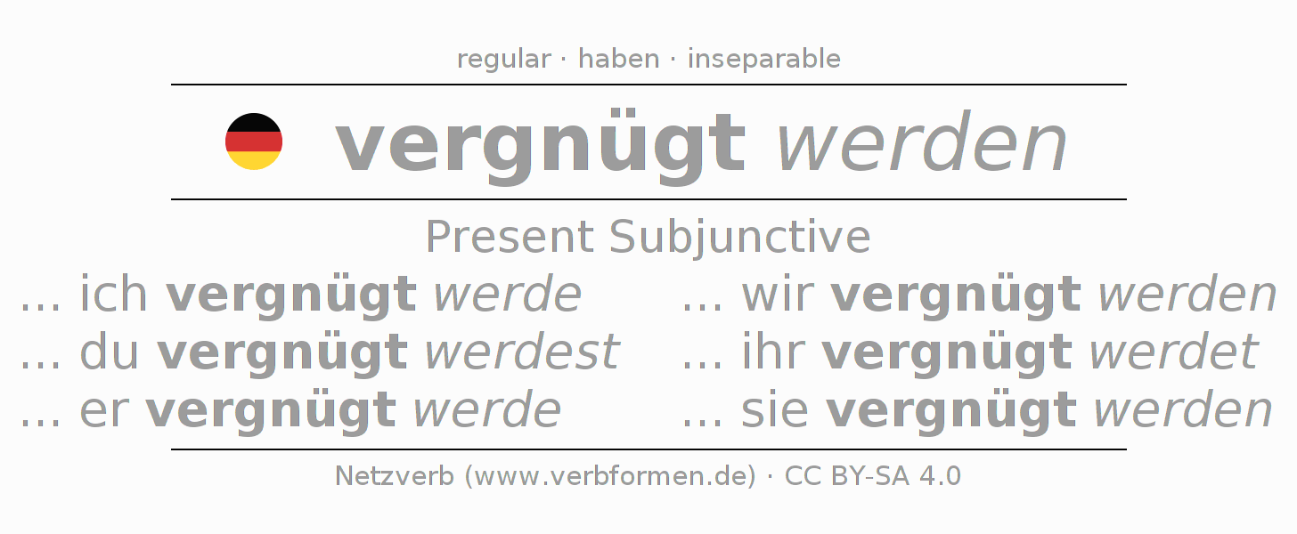 The verb vergnügen fully conjugated in all persons and numbers in the Subjunctive Present