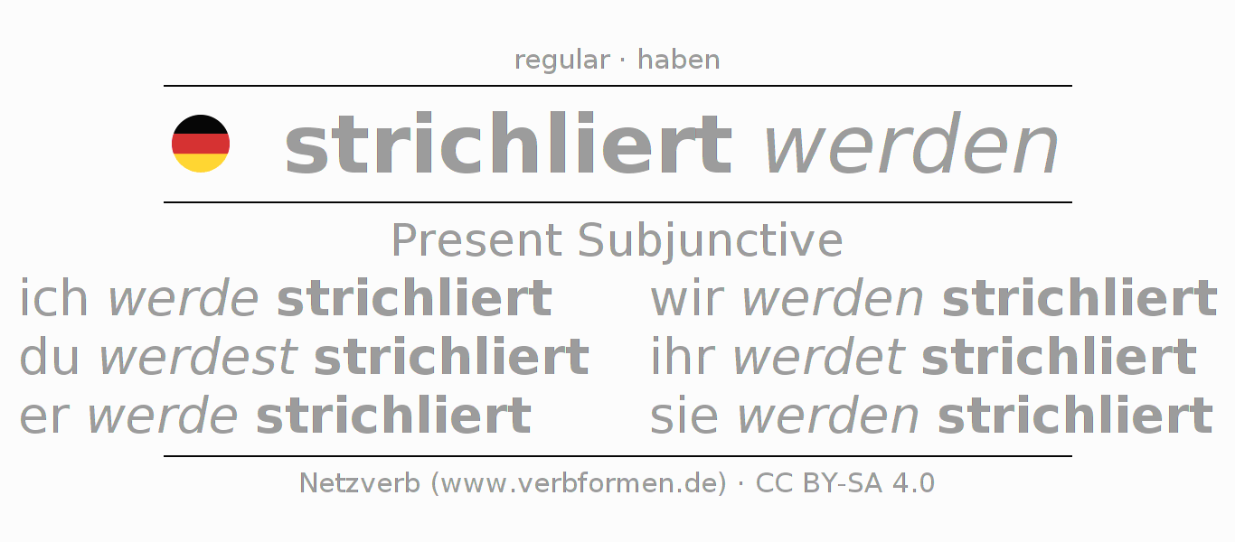 The verb strichlieren fully conjugated in all persons and numbers in the Subjunctive Present