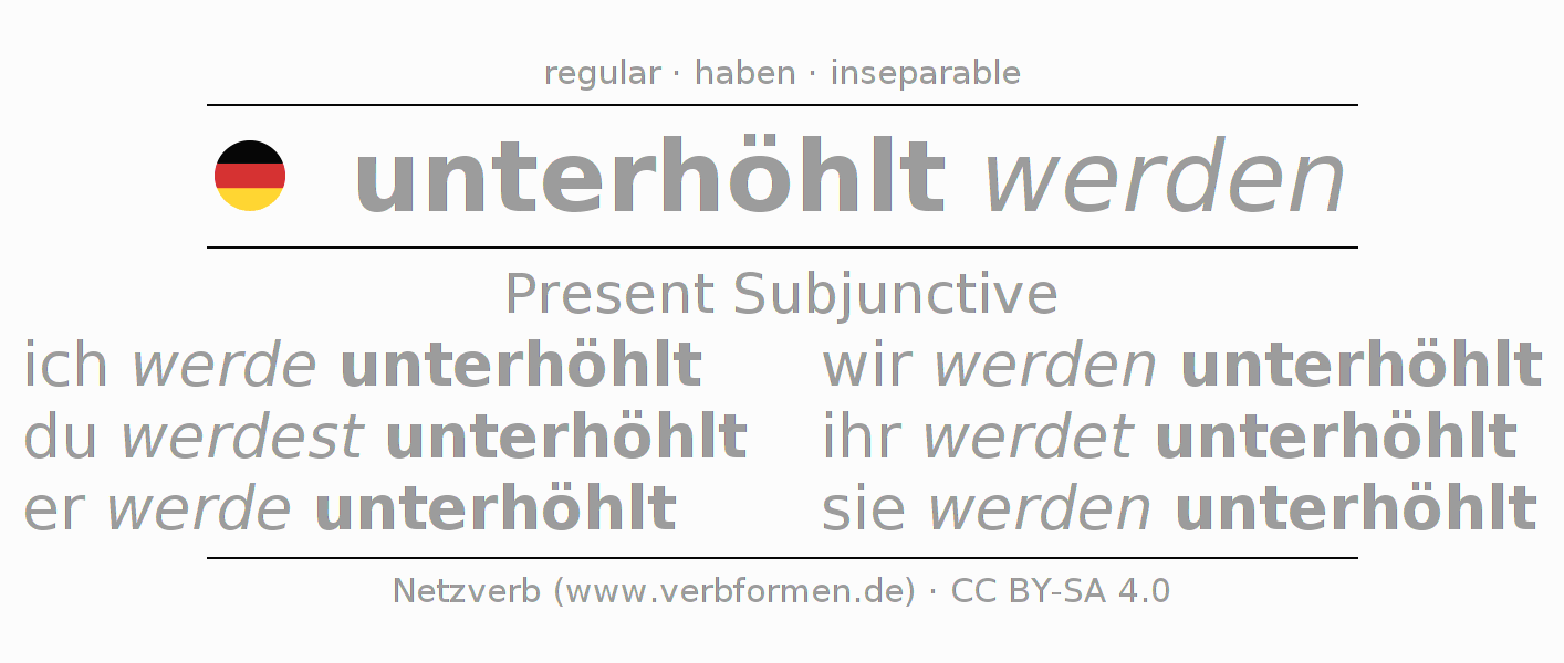The verb unterhöhlen fully conjugated in all persons and numbers in the Subjunctive Present