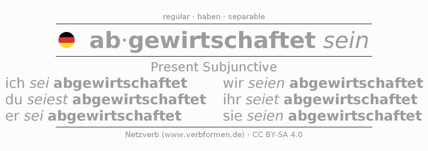 The verb abwirtschaften fully conjugated in all persons and numbers in the Subjunctive Present