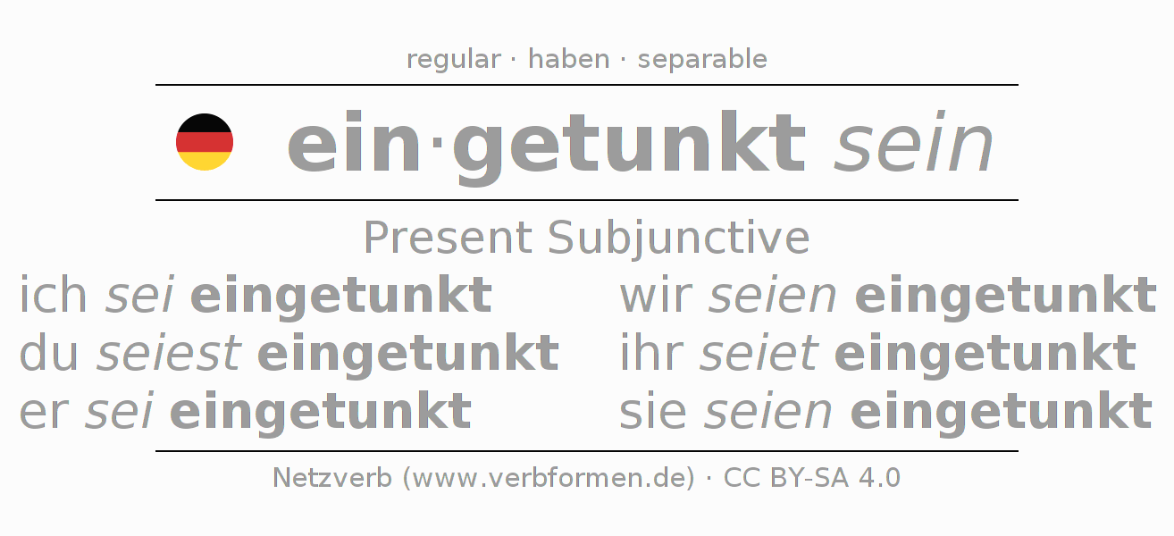 The verb eintunken fully conjugated in all persons and numbers in the Subjunctive Present
