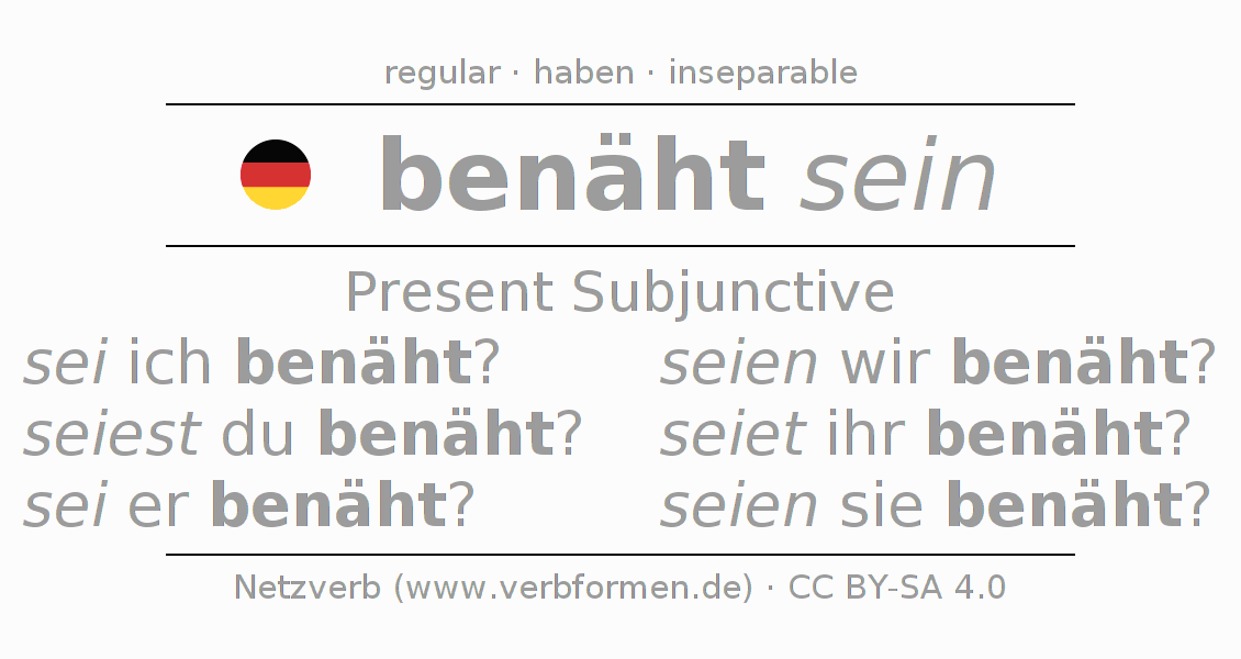 The verb benähen fully conjugated in all persons and numbers in the Subjunctive Present
